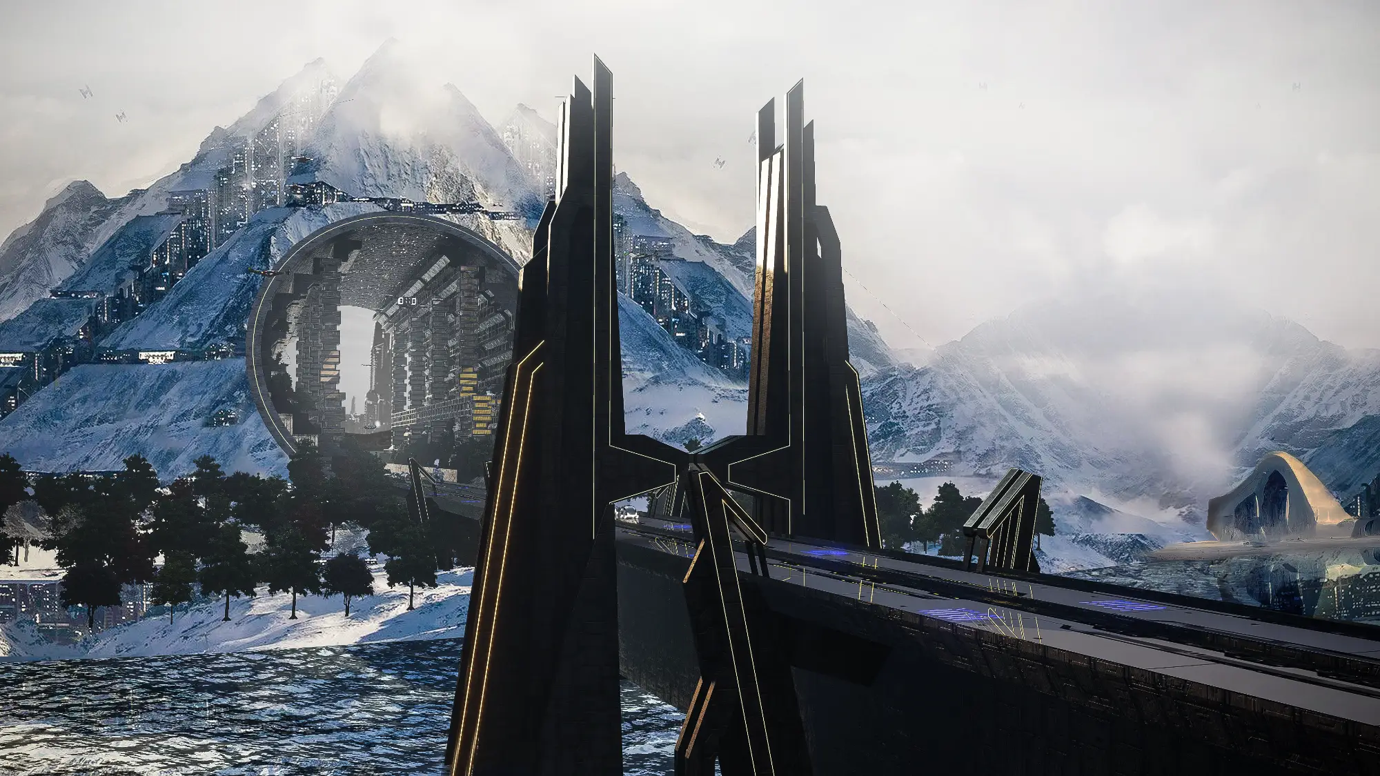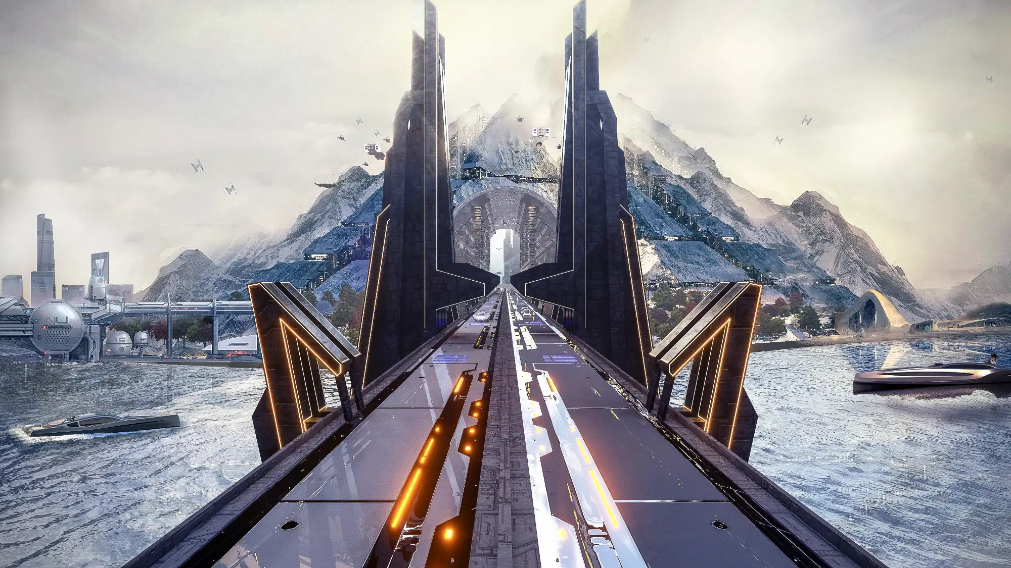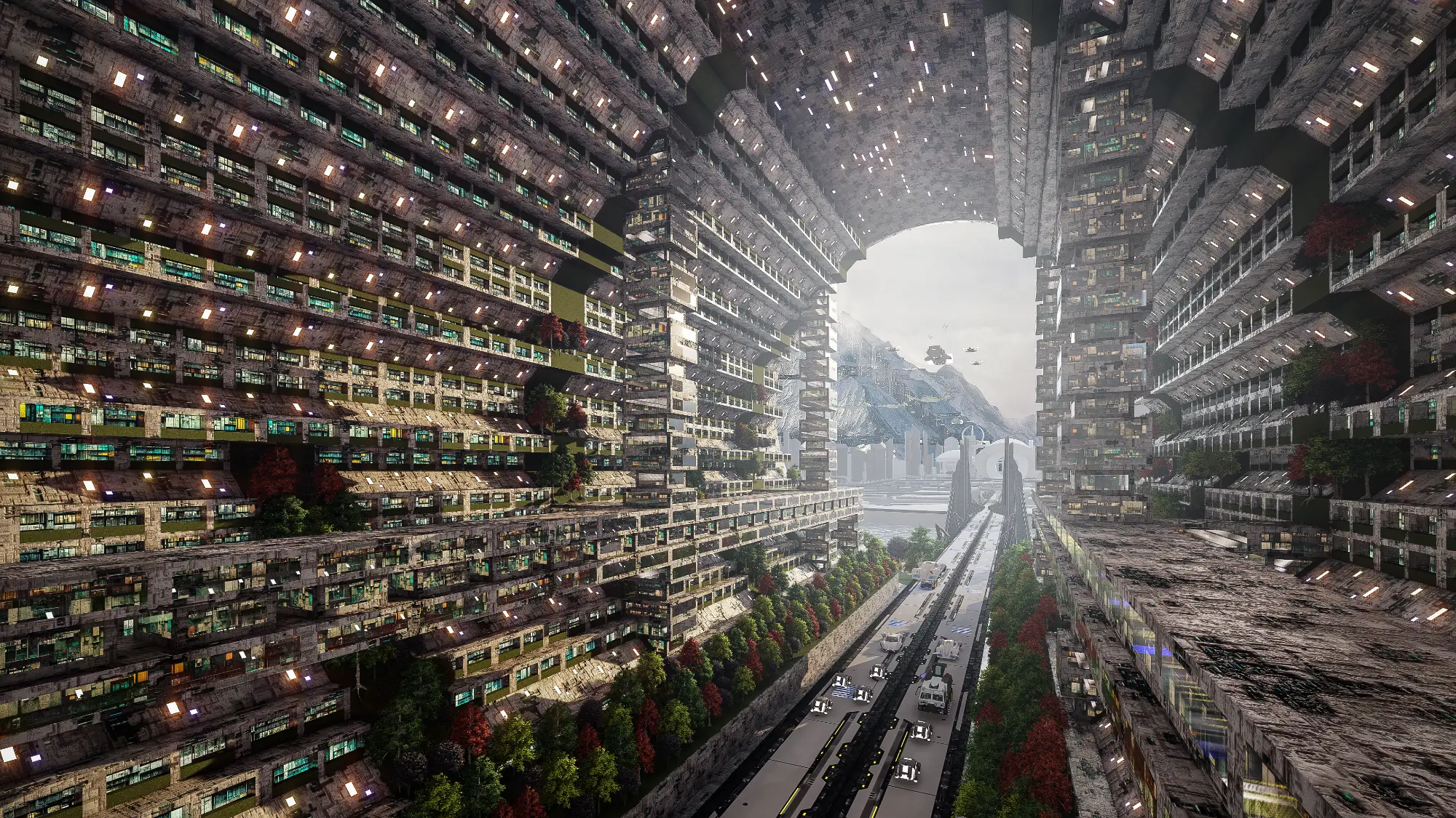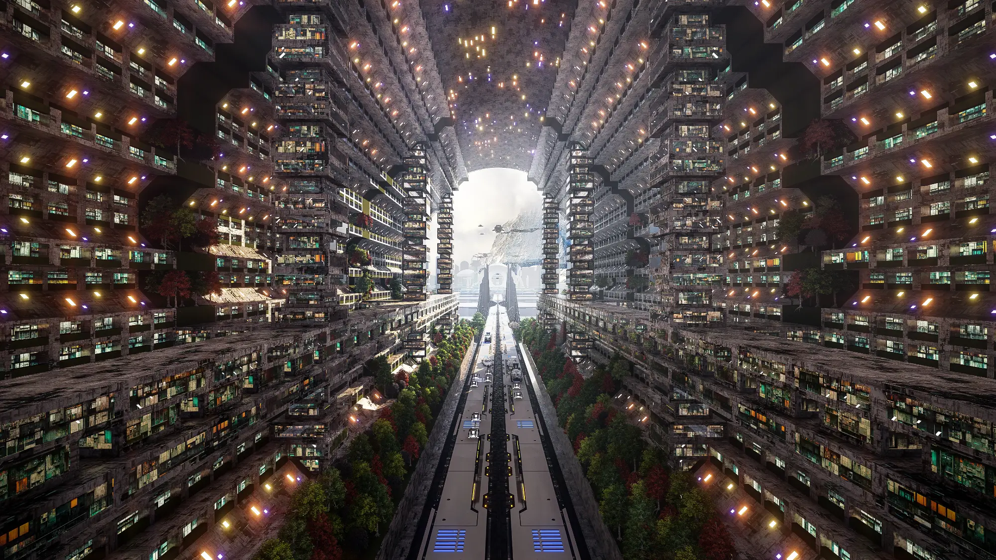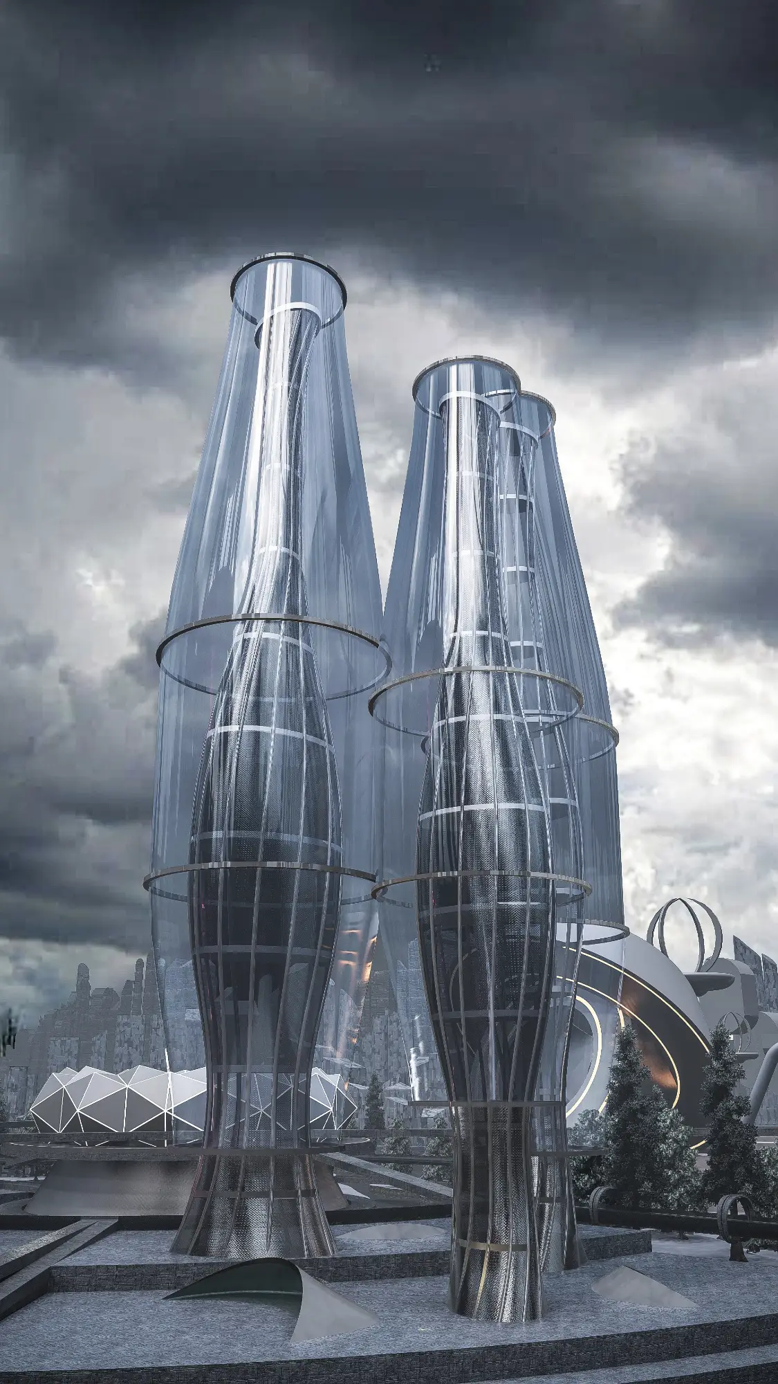 Architecturally, the Metaverse is a visual spectacle. Skyscrapers twist and bend into unfamiliar forms, their geometries unbound by gravity or construction constraints. Textures, colors, and patterns shift from zone to zone, offering a diverse and continuous sensory experience. Gateways, skywalks, and landscape elements interrupt the hardscape, creating rhythm and moments of repose within the high-density environment. Every corner of the Metaverse speaks a language of experimentation, one where form is not just liberated but expressive of a new digital spatial logic.